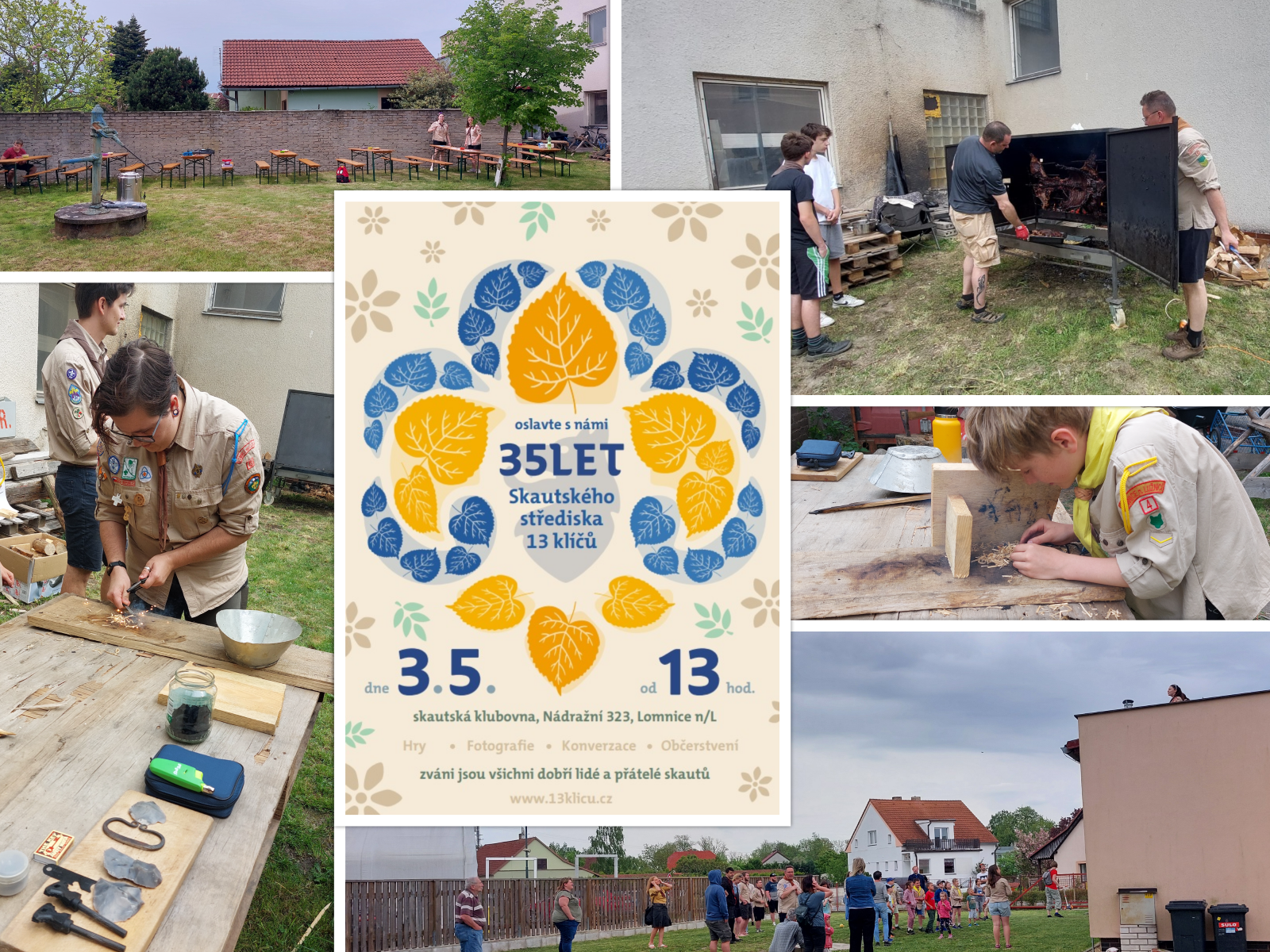 Akce k výročí obnovení 35 let našeho střediska se uskutečnilo formou přátelského setkání v sobotu 3. května od 13:13 hodin ve skautské klubovně v Nádražní ulici. Během odpoledne, kdy mohli účastníci prohlédnout prostory klubovny s vystavenými kronikami, fotografiemi či promítanými videozáznamy zachycující činnost střediska a také ochutnat pečeného divočáka. Na balkónu proběhla dražba a jako vrchol odpoledne odhalení nového střediskového znaku.